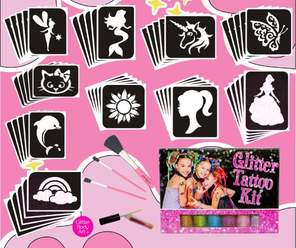 Our Girls Glitter Tattoo Kit is perfect for giving as a birthday present, Christmas present or if your doing your own small party or sleepover.