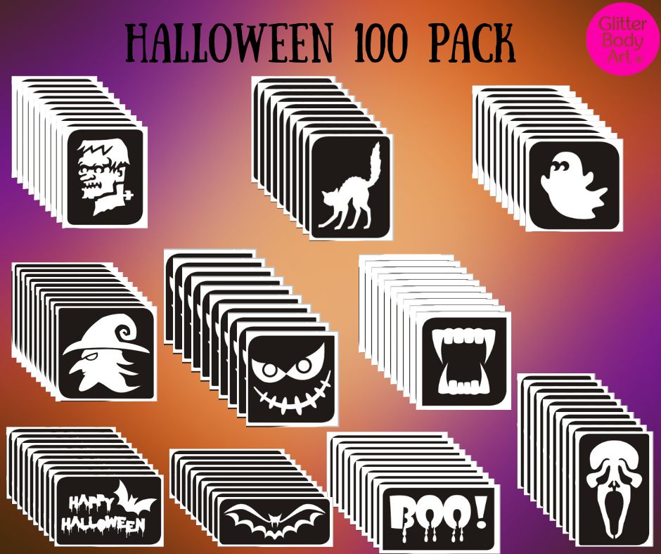 Pack of 100 Halloween Temporary Tattoo stencils which are Blank templates for creating Glitter Tattoos for kids.