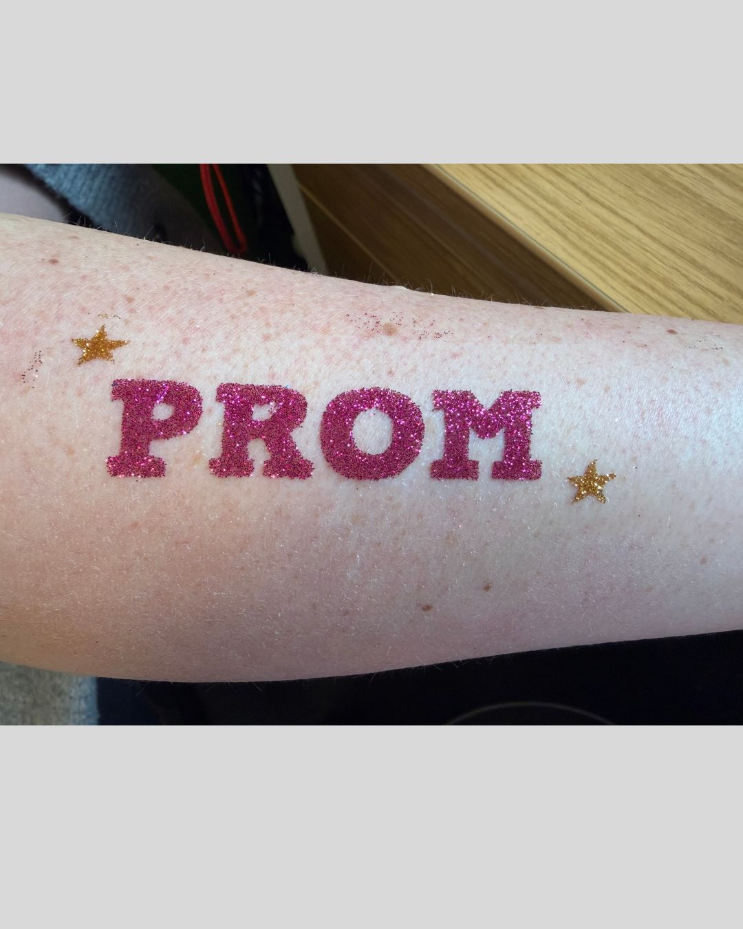 Our Prom Word Temporary Tattoo Stencil is perfect for school proms!